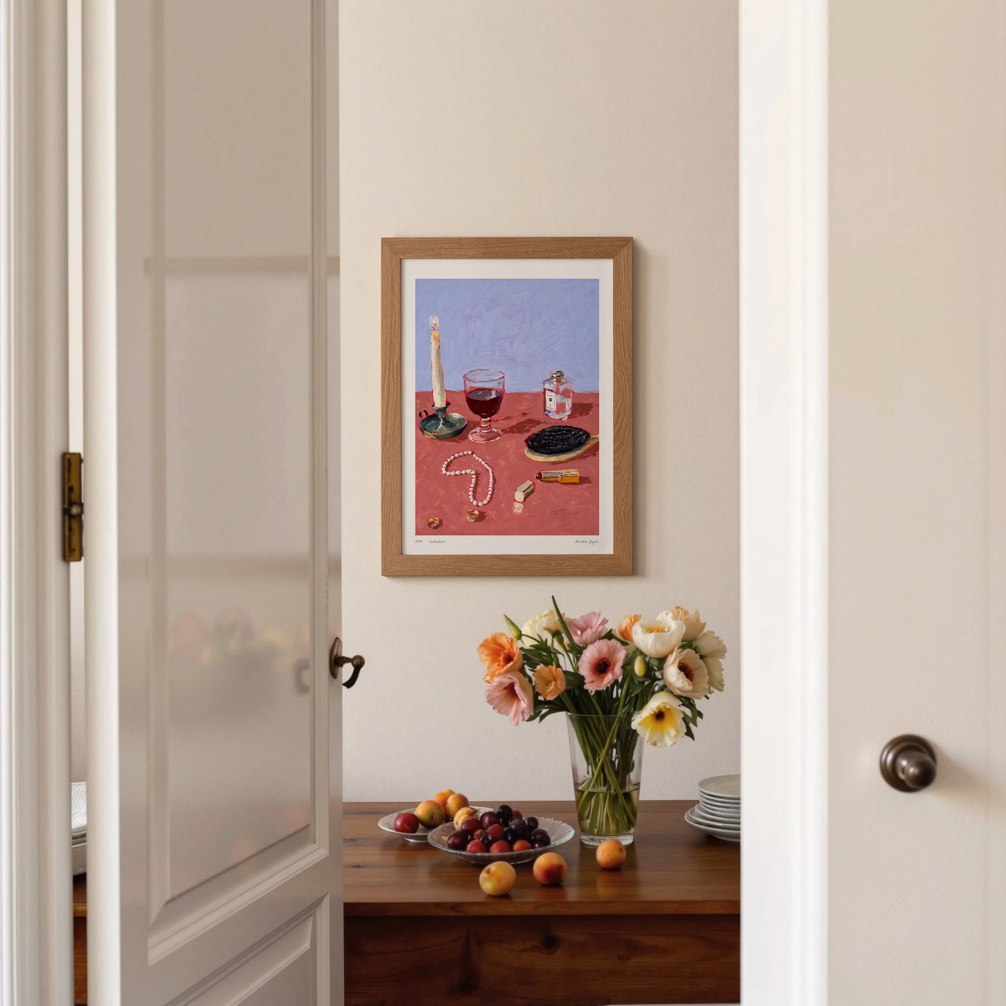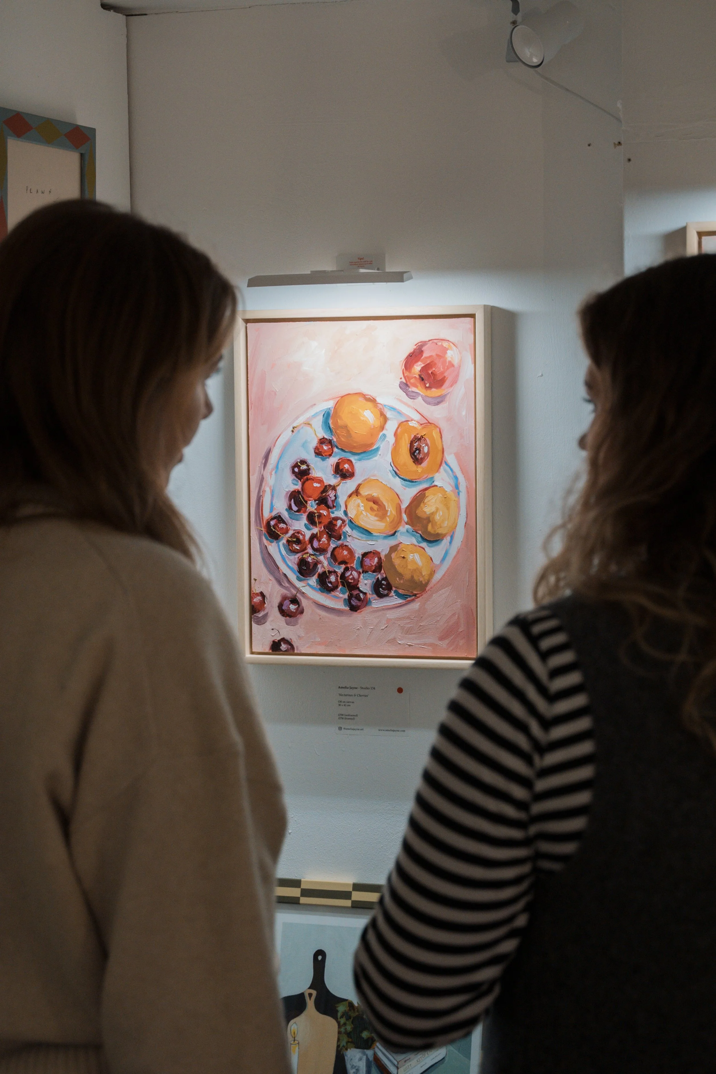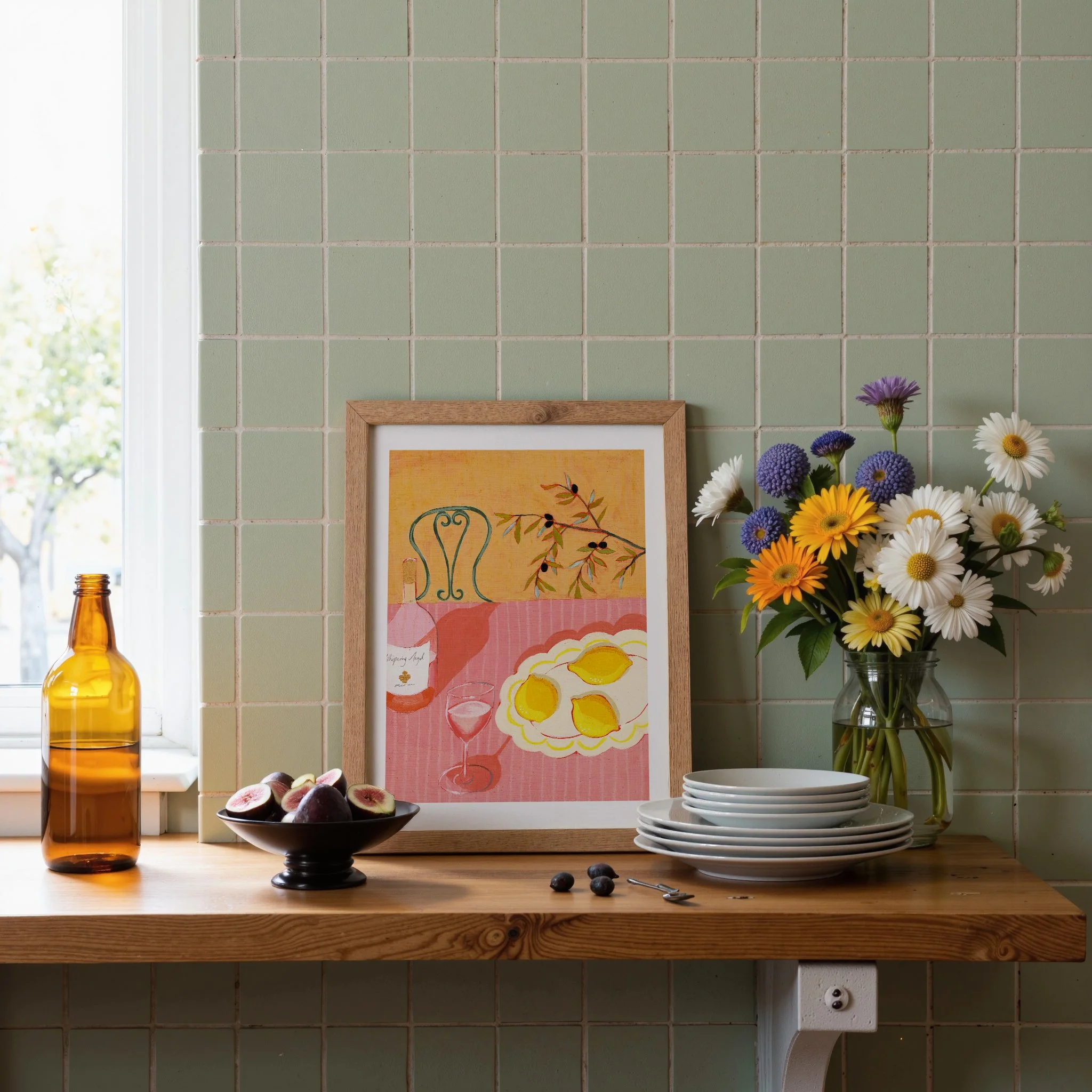 I paint mostly table scenes here in my studio in Wimbledon. Capturing & celebrating the precious moments we share with loved ones around the table. Whether it be gossiping with friends over espresso martinis, drinking fine wines with a romantic partner or tucking into a slice of your mothers signature strawberry cheesecake. I like to think, although the art might not be to everyone’s taste, pardon the pun, there’s something for everyone to relate to.